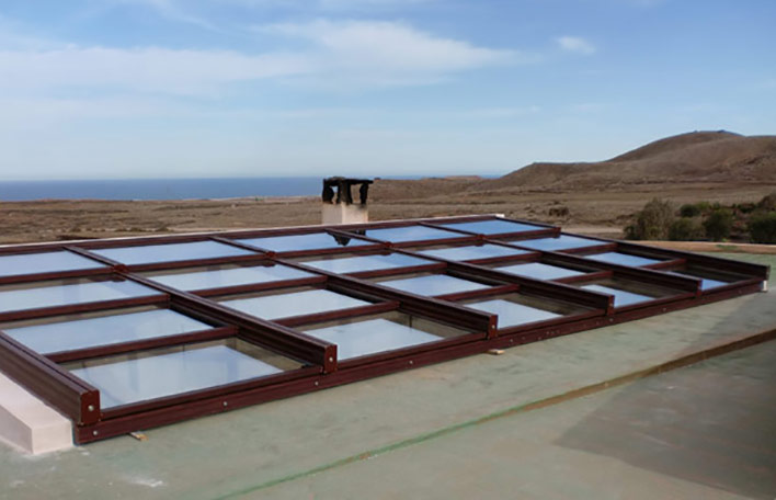 Pérgola Techo móvil cristal es una cobertura móvil de hojas deslizantes construida a medida y que permite ampliar los espacios habitables, creando ambientes protegidos, seguros y acogedores. El diseño de sus robustos perfiles permite crear espacios diáfanos, limitando el numero de vigas.